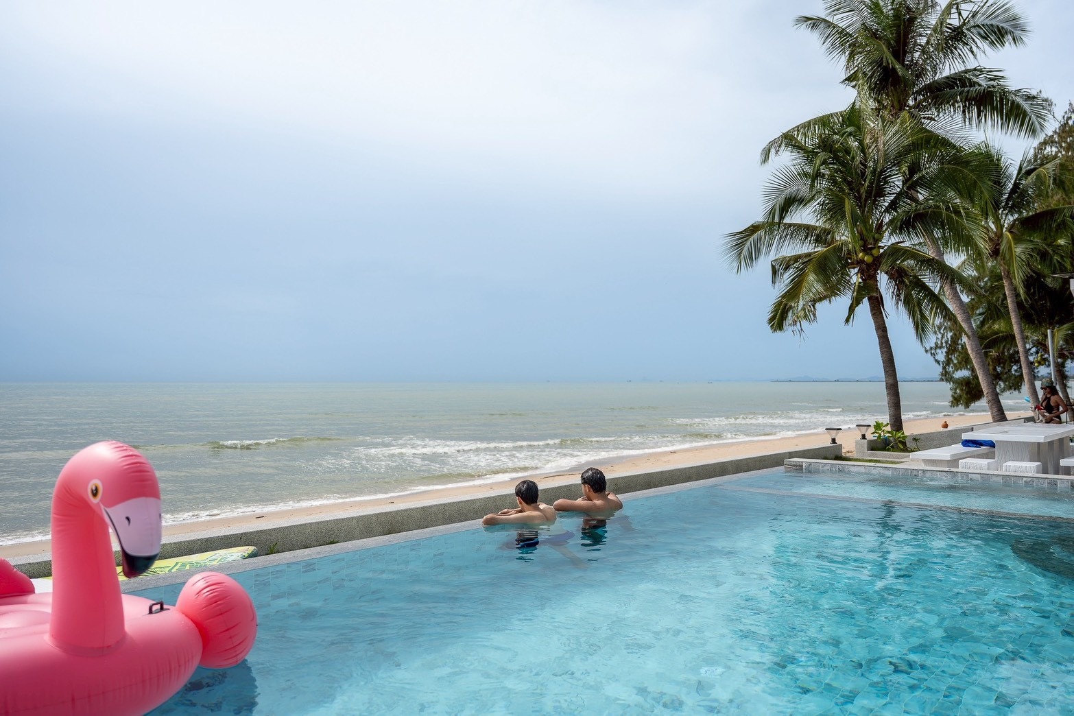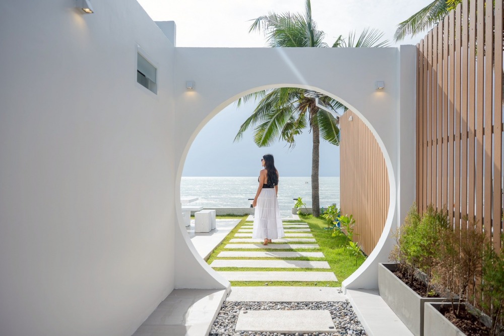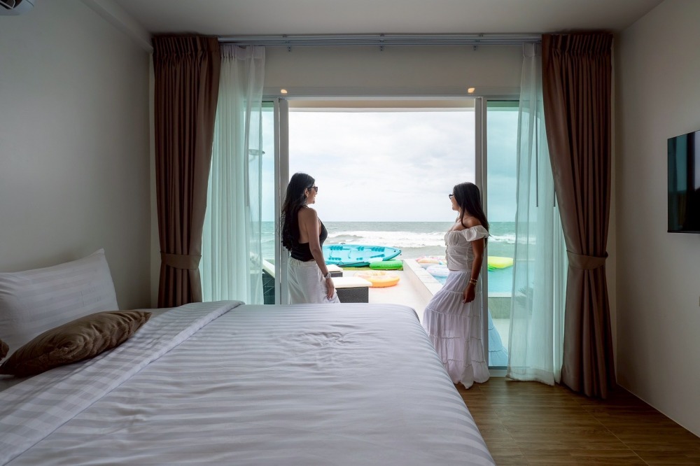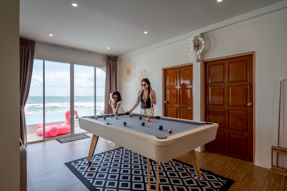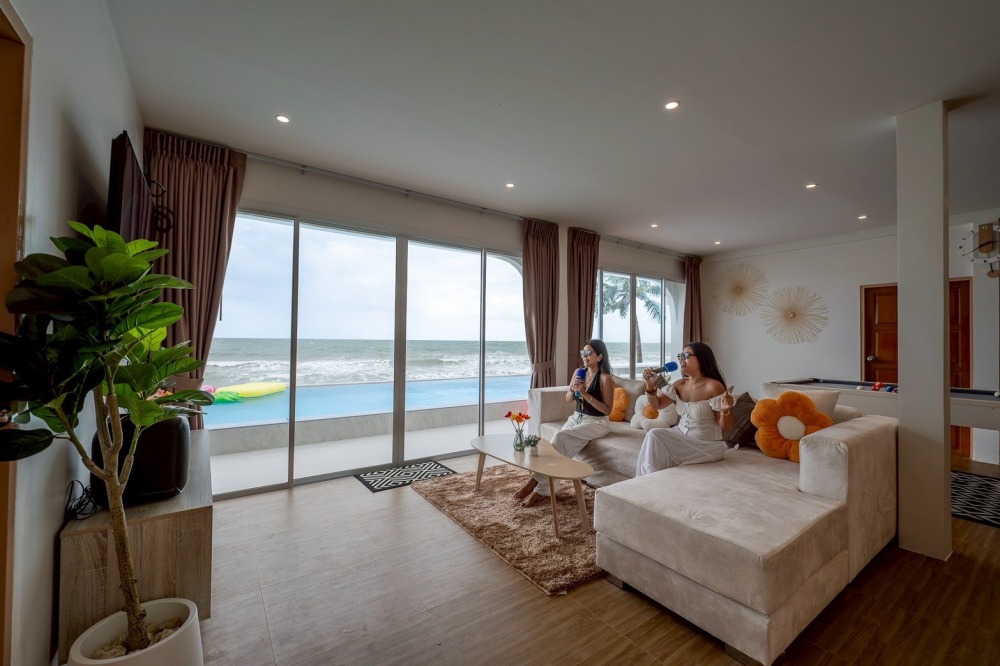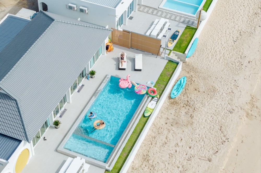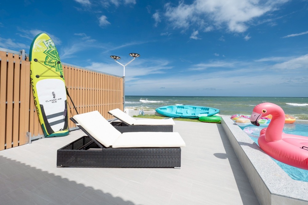 พลูวิลล่าชะอำ บรรยากาศดี ได้วิวริมทะเลมีพระอาทิตย์ขึ้น หน้าบ้านเป็นหาดทราย (หาดบางเกตุชะอำ ใกล้สะพานปูชัก)